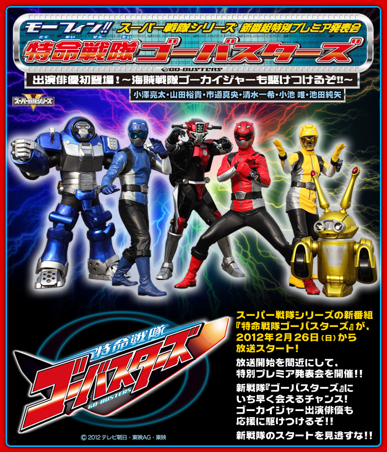 Já anunciado oficialmente pela Toei, o novo Super Sentai de 2012 é o Tokumei Sentai Go-Busters (tradução literal para Esquadrão de Missões Go-Busters). Recentemente, junto ao anúncio, a Toei já mandou pro ar o website oficial (e pobre) do sentai.